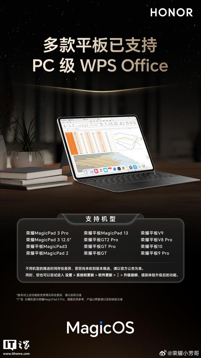 参考IT之家此前报道,已支持 PC 级 WPS Office 的荣耀平板如下: